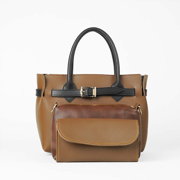 Handbag: Width: 10 inches Height: 8 inches Depth: 5 inches Closure: Top zipper Handles: Double Compartment: Single main section Strap: Removable & adjustable (Length: 44 inches) Inside Pouch: Width: 7.5 inches Height: 6.5 inches Inside Clutch: Width: 8 inches Height: 4 inches...