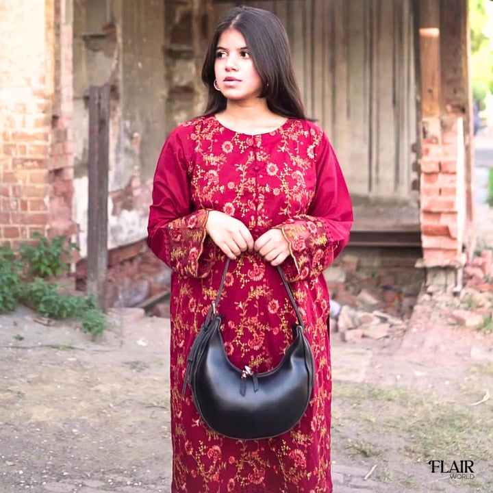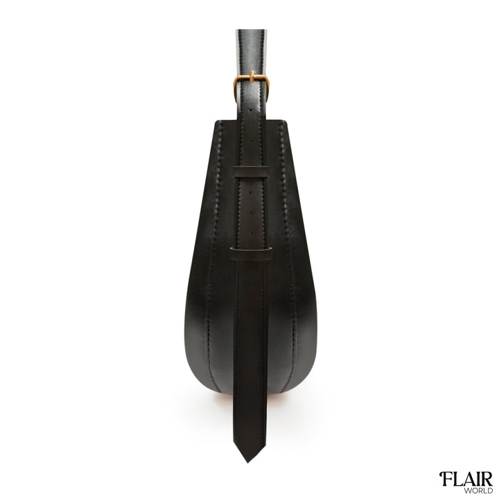 Synthetic leather material Single Zipper compartment Adjustable shoulder strap (Length 24 inch) U-Shaped Bag Two zip runners Width: 10" inches Height: 5" inches ...