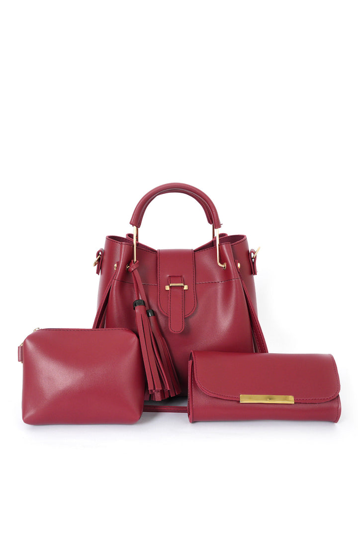 PRADISE 5 Pcs PU Leather Handbag Set, Stylish Lock & Wallets, for Women (Maroon)